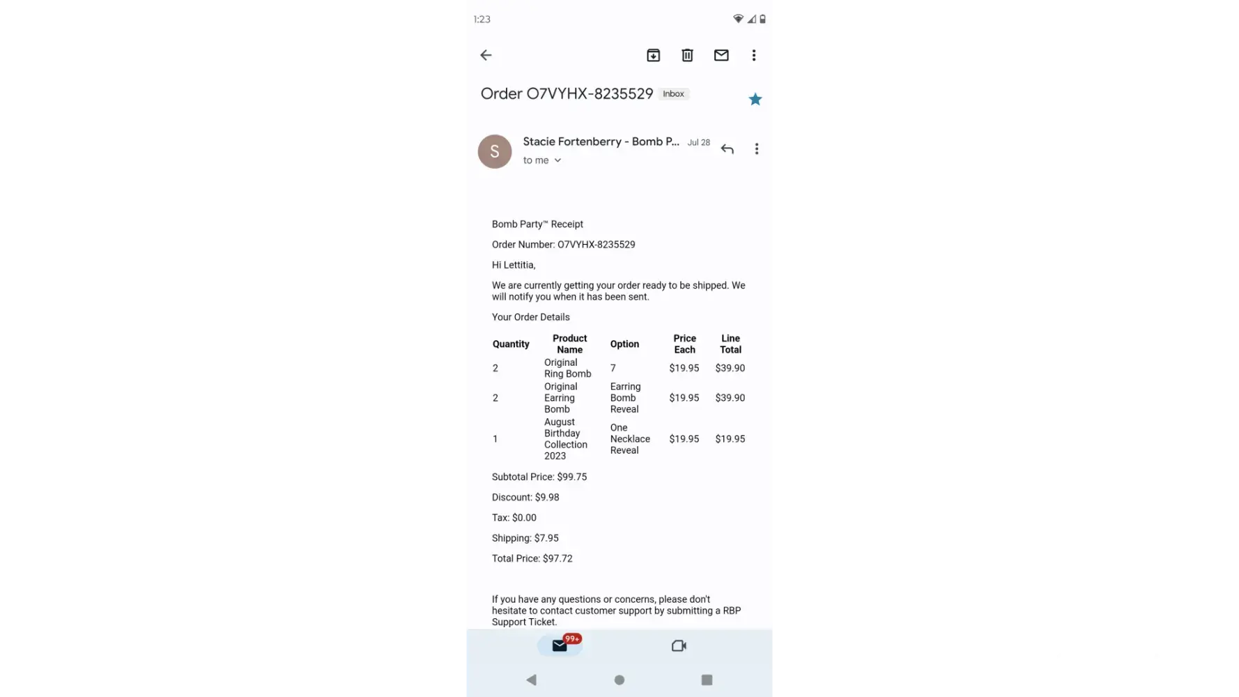 I ordered 2 rings ( 2 separate orders) I paid for shipping twice only received one ring with little response and no resolve I bought two rings from ring bomb on August 1st. The first ring was a size 8 I have been watching the party's for a long time and I found a hostesrs I really liked. She was fun and had a great attitude so I ordered. I ended up falling asleep so I missed my reveal I did go back and watched the replay. I was happy with the ring she revealed and decided to buy another. So I bought a size 10 the same day for her next party. I was online and able to watch that reveal. I was really excited to receive my rings. About a week or so later I received a shipping notice for the size 10 ring I ordered. I assumed my other ring would be in the package since I ordered the same day. I received the ring and the package only had the one ring. I immediately wrote the hostess. I didn't get a quick response which believe me I understand. She is a mom I am a mom I get it. After going back and forth a few times in conversation that was spread out over days. She last told me both rings had been shipped together and gave me the tracking. I am upset because that was not the case as I originally wrote her telling her that. There has been no resolve and I paid for shipping twice and 2 rings but yet only received one. I know it is not a huge amount of money but I work just had hard as the next person and I would like what I paid for. I have all the conversations documented and the receipts for both. I would like either my money back or simply a new size 8 if the other one can't be found. I will file a charge dispute with my bank if this is not resolved soon. I am not angry just disappointed. Thank you for your quick response.