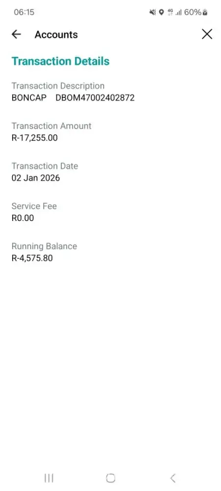 My monthly payment is supposed to be R2560. 00 i received an email that on the 2nd of January 2026 a deduction of R10592 will be deducted. I went to customer support service center and Lesley triad to help me on 24th December no financial controller were available. I received an an email today29th December that that the R10592 will be deducted on the 2nd...