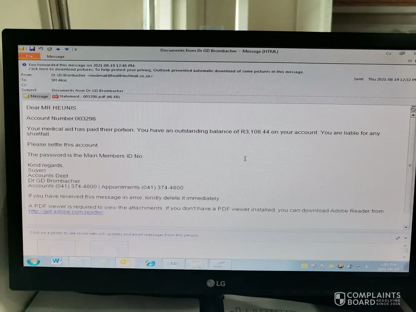 I wrote to Bonitas of my unhappiness of they way they handled my matter especially at the height of the Covid 19 Lockdown and the strain and stressors we were experiencing for Bonitas to suspend my medical aid without informing me of the outstanding monies which I was not aware of.