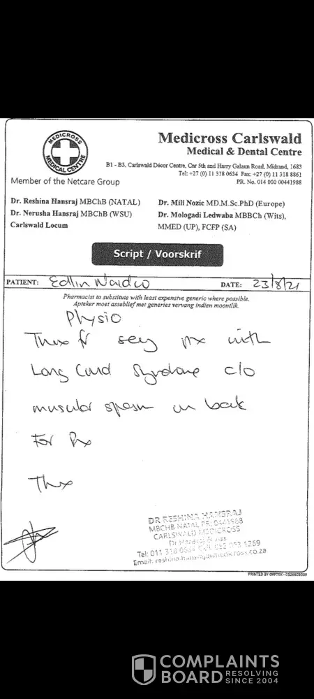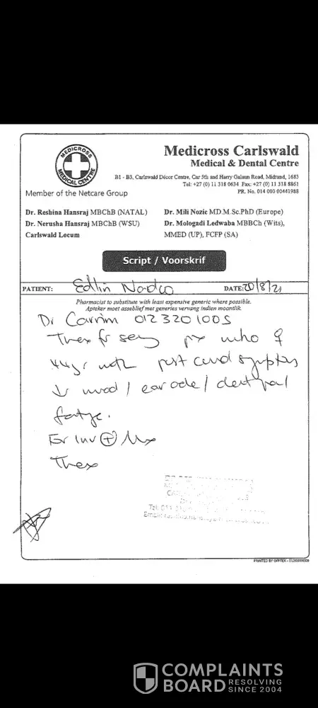 5. I also made an upfront payment for R 1200 at midstream hospital as I was terribly ill.