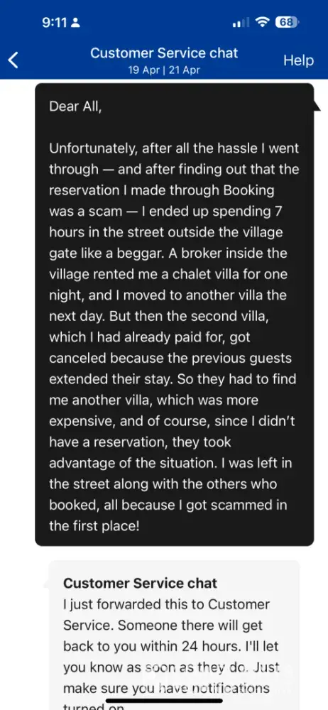 Review: Booking.com has excellent search functionality, but their customer service is absolutely catastrophic when problems arise. They consistently blame customers and fail to honor their own promises. What happened: I had a confirmed Hilton Geneva reservation. Upon arrival at 1:30 PM, the hotel informed me my booking was cancelled days earlier without...