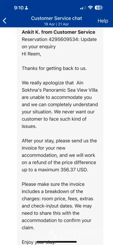 Read full complaintHotel booking