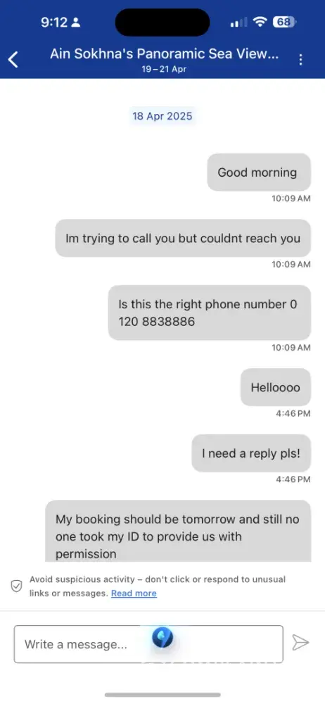 I have booked a private sea view vilaa in einbay compound located in ain sokhna - egypt and it was non refundable and tried to contact the property several times always mobile closed and offcourse I went directly day before checkin date to confirm with booking.com as they should be the trusted place where I booked through it!, they told me that they are...