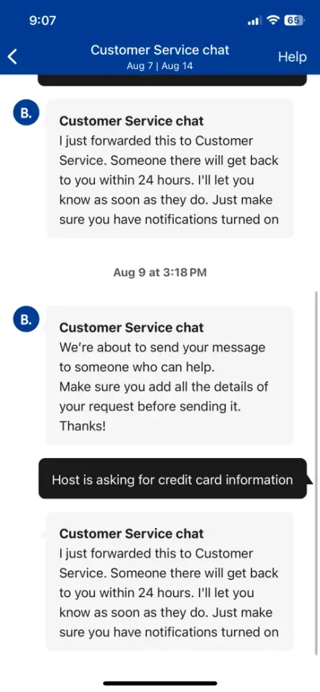 I’m a very active customer. Have 4-5 booking a month and unfortunately, 2 booking has some critical issues. First one I was charged and the host said they never received and money and cancel my booking , second I was asked credit card information by my host. Both issues were escalated to booking.com , said someone will be in tough and nothing after multiple follow ups. They are prices aren’t better than most of the competitors so why to use them