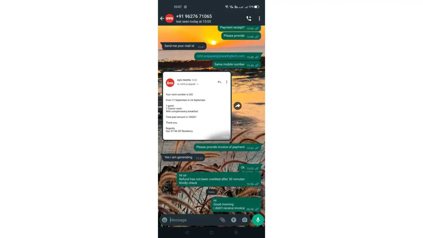 When i reached at hotel they told i didnot received any payment from you except first payment which you made on 12th september