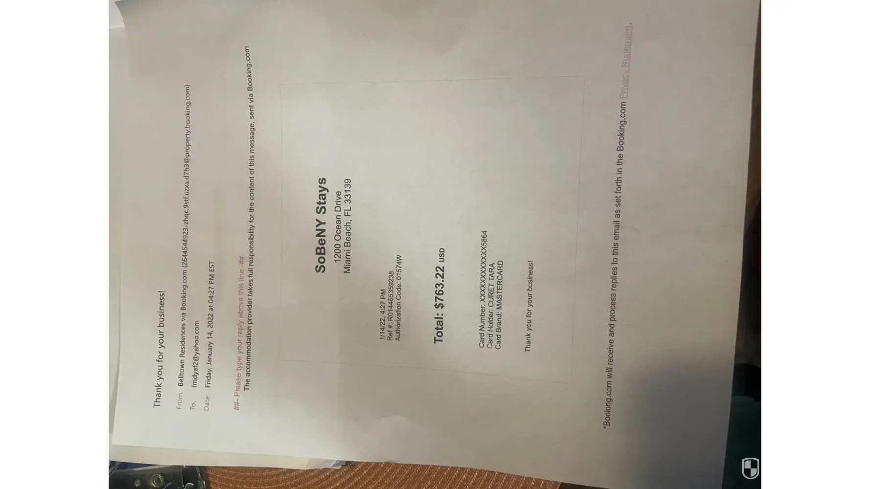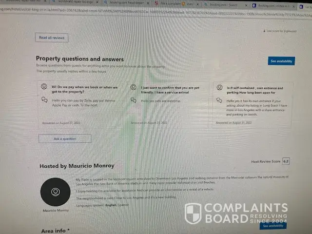 As a last resource I asked to be transfer to a legal department or at least tell me how to reach out to them but one more time the representatives had nothing to do because it doesn’t exist. Booking.com moves thousands, millions of travelers. Mr. Lynott for example had 10 bookings through Booking.com before he booked my place. He is probably repeating the crime repeatedly because of this company’s lack of responsibility toward hots.