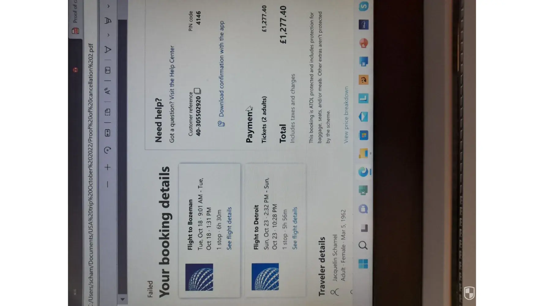 I booked a flight from Detroit to Bozeman on the 18th September but your site failed as the price had increased, so I rebooked on another card, which has gone through successfully, however the failed flight has been charged to my card. This was not authorized and I have been trying to obtain a refund ever since.