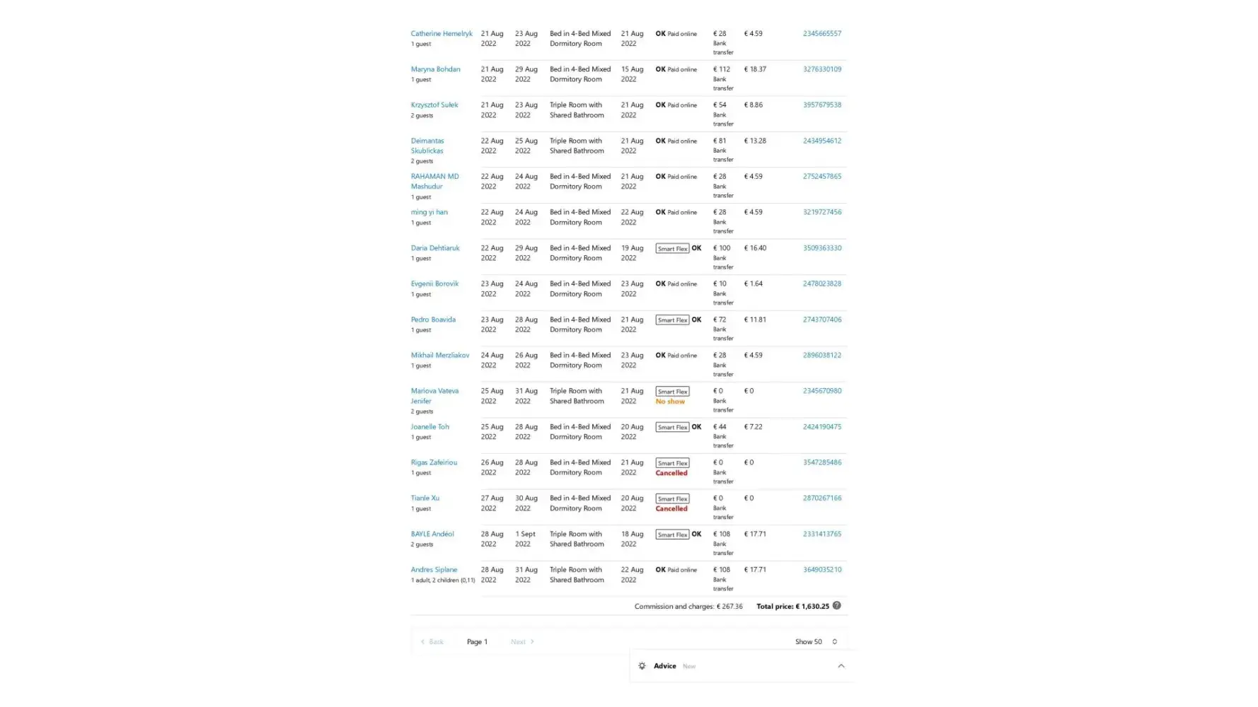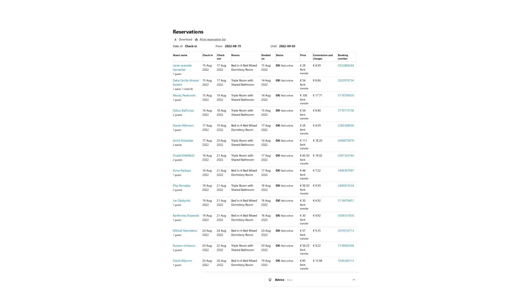 Thus, as of today (September 01, 2022), according to the accommodations of tourists actually completed and carried out by us at Booking.com B.V. there is a debt to our organization in the amount of 1204 euros 05 cents.