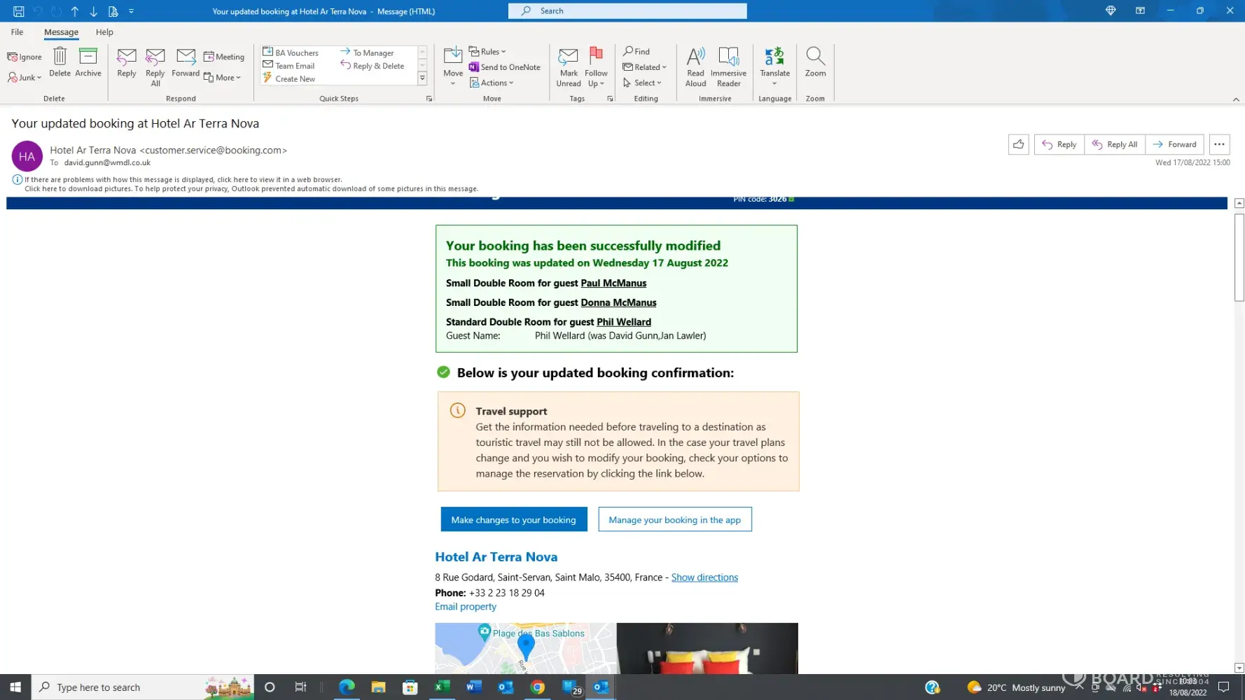 Départ : dimanche 4 septembre 2022 Nb de personnes : 2 Email client : bian.[protected]@guest.booking.com