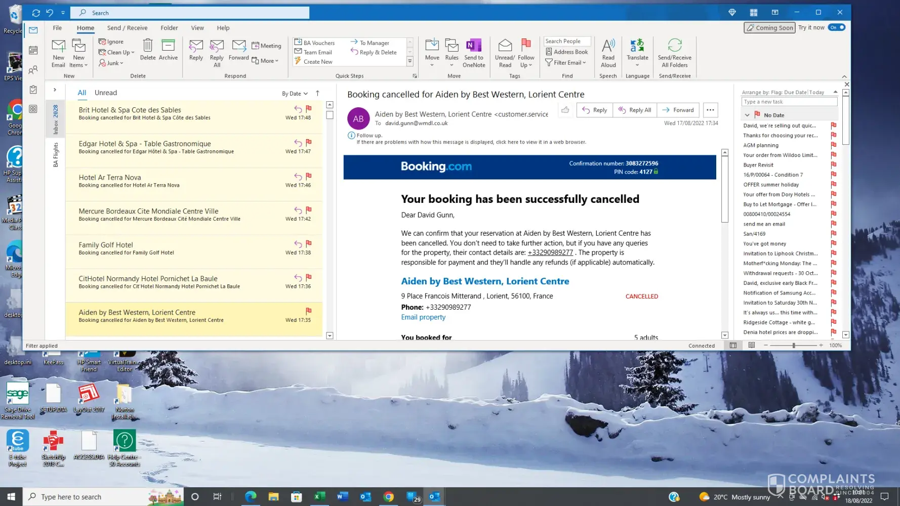 I had booked seven hotels 4 rooms for one night each for a cycling trip. At 5pm the day before departure I received emails saying I had cancelled all the bookings...I hadn't. I had updated guest names on all this reservations at around 3pm.