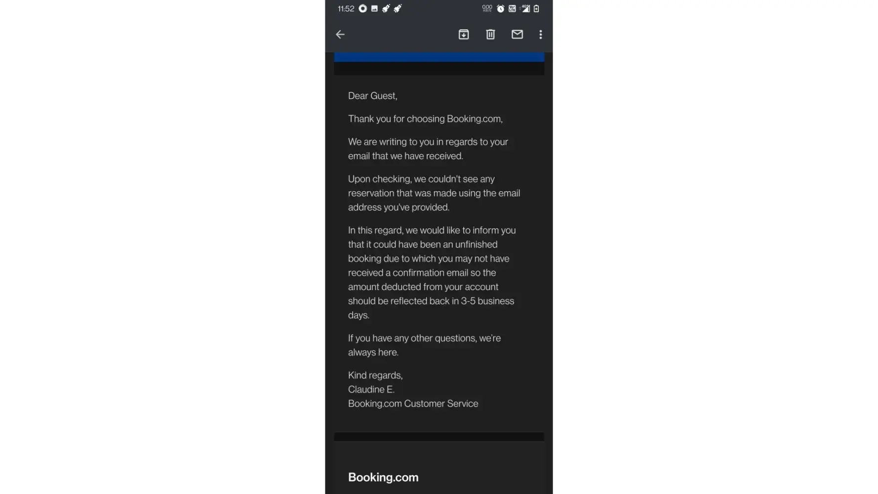 After I waited for Booking.com to cancel my booking and return my money, I contacted Booking.com and asked for an explanation on why did I end up having no money and no place to stay?