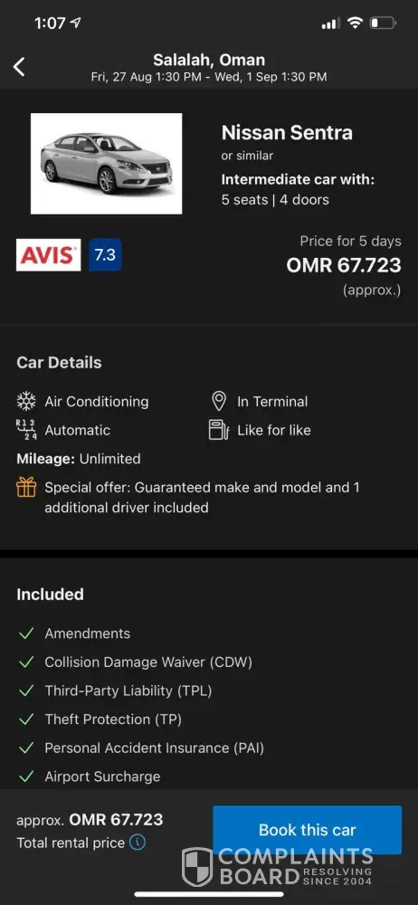 Prepaid car rental through booking.com