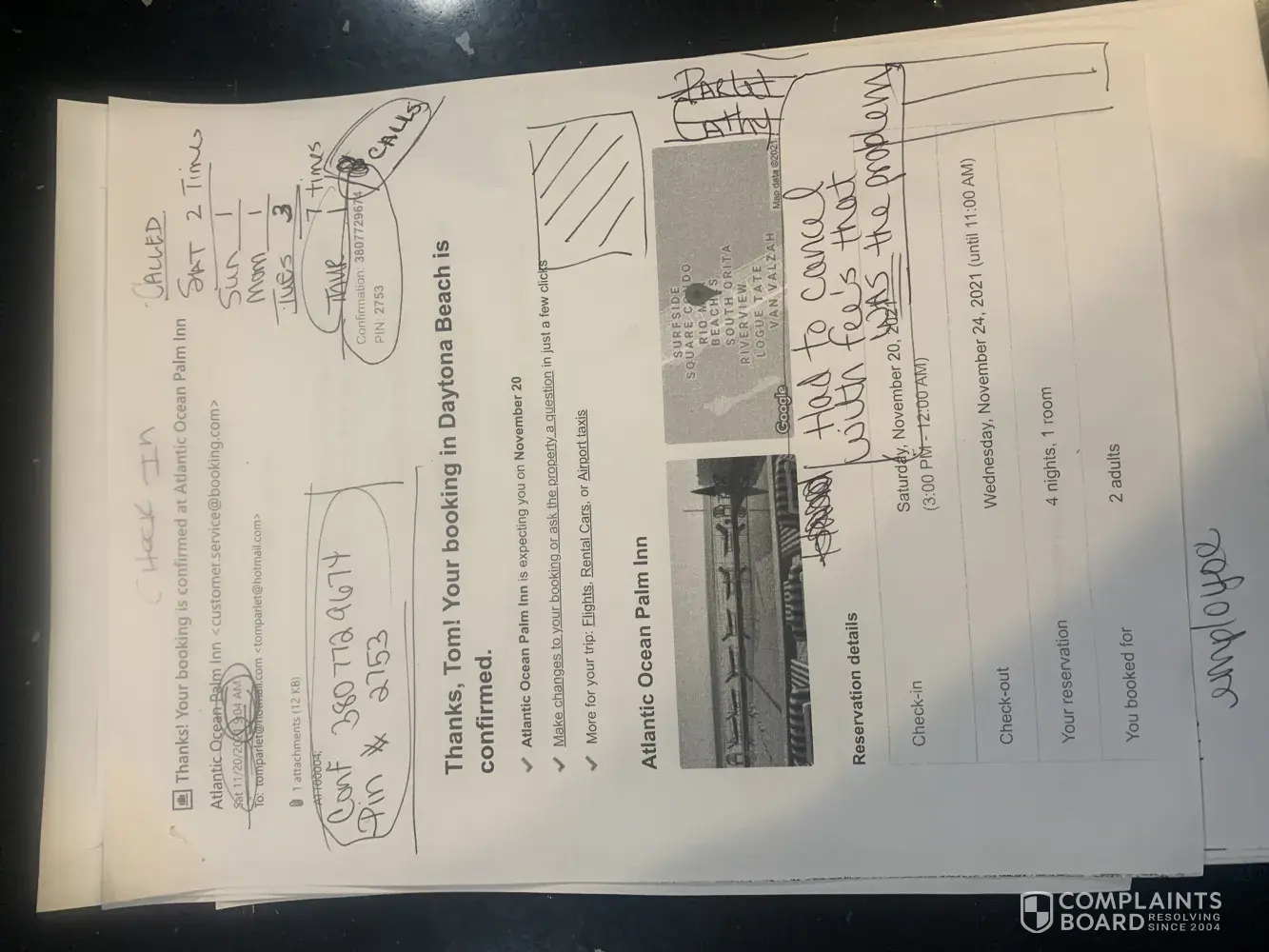 Booking Page Lists Incorrect Address. Customer Service Impossible to Reach.