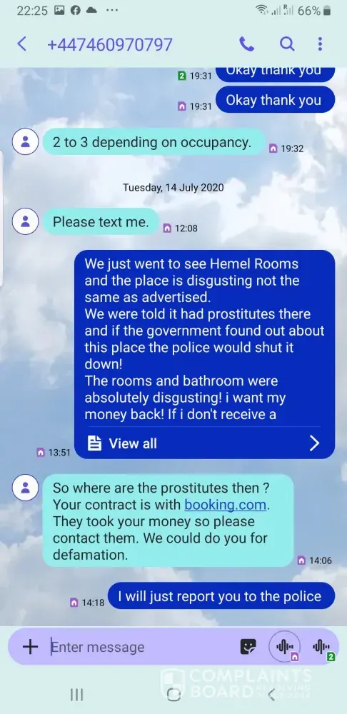 This is completely unacceptable. I have spent all day looking for booking.com's complaint contact details. Yesterday, when we checked in to the hotel and saw the room and complained, the hotel staff just stopped responding or acknowledging us after we showed the booking details.