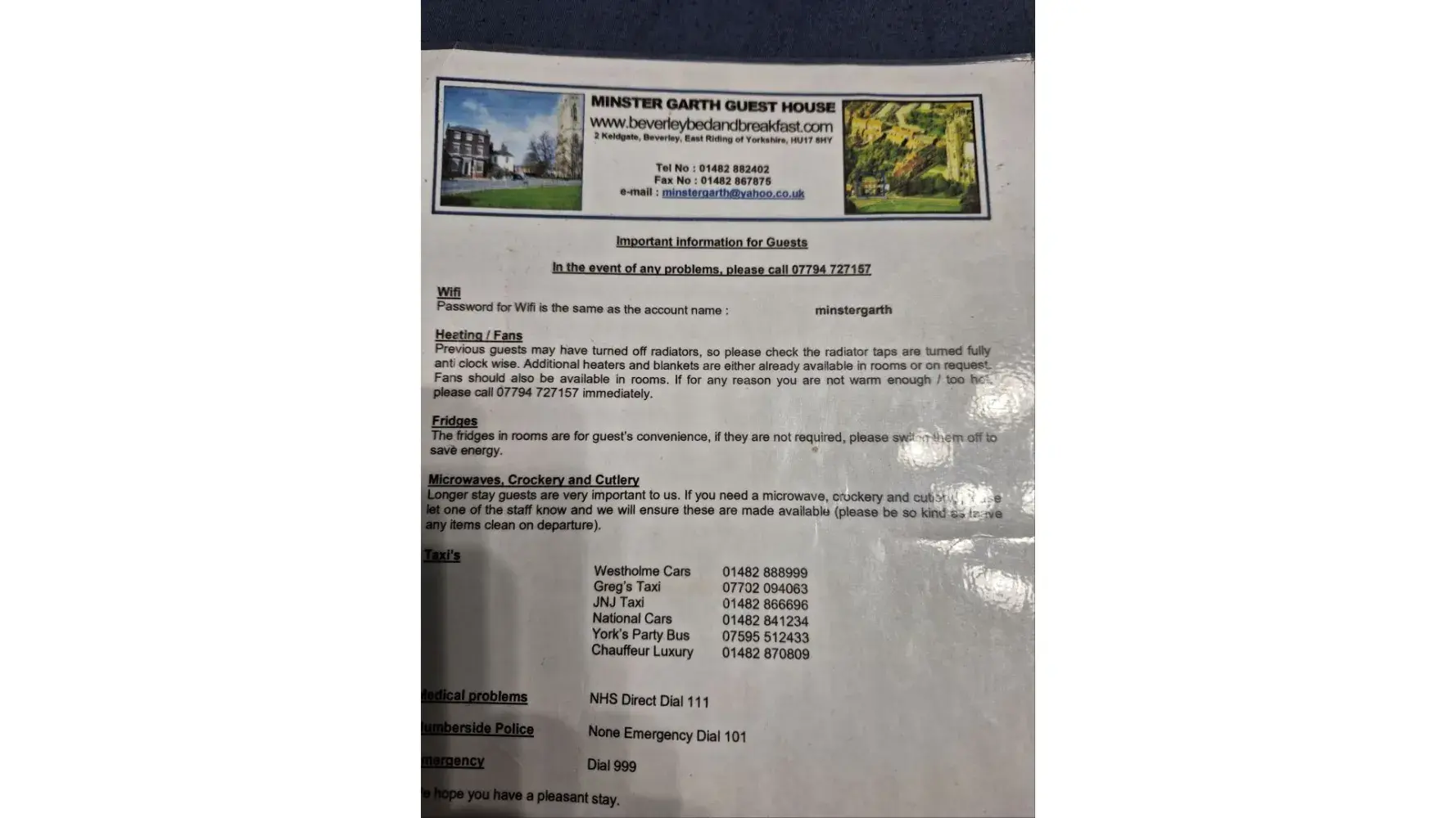We were unaware of this guest house was a no breakfasts for £374 for a room also no landlord or any one were to greet us we had telephone them to get codes to open our room to get keys guest house had scaffolding was up around the main property door was broken plus 2x adults were smoking weed outside the property which we where not aware of this I thought it was illegal to smoke weed on property plus we checked the room out found curtain with burn mark on it plus we also found an empty bottle of meths plus 2 x times hair brushes left on floor plus the main door was not in a secured environment we had to go to my family house to sleep has it was not acceptable for the health of my disabled child plus wife had asthma there was no hot water when we tried to get a shower before we left has it was unacceptable when we turned up to see if anything else has changed but it got worst with the door being kicked in so it was a security risk plus health and safety plus there fire certificate was out of date from 2022 they was a night we stayed for when fire alarm went off and no fire engines turns up landlord was called ref fire alarm and there answer was (cant here it) took 45 mins before they turned up with out an apology he just walked in turn the alarm off then drove away so we then decided to leave has it was not safe for my family to be in that environment I have got evidence -