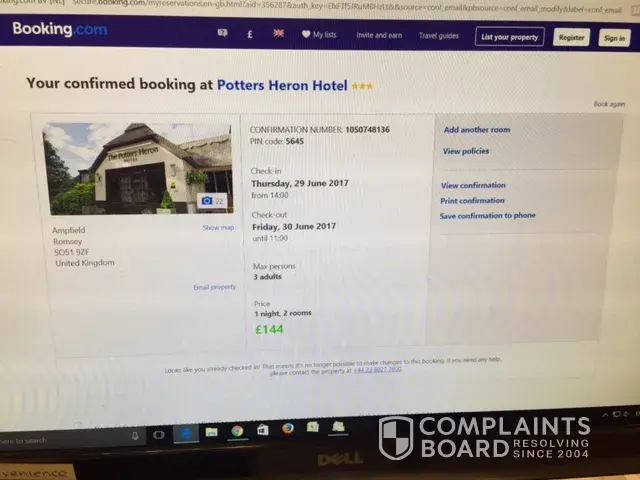 I am complaining about the false advertising regarding one of the hotels on booking.com