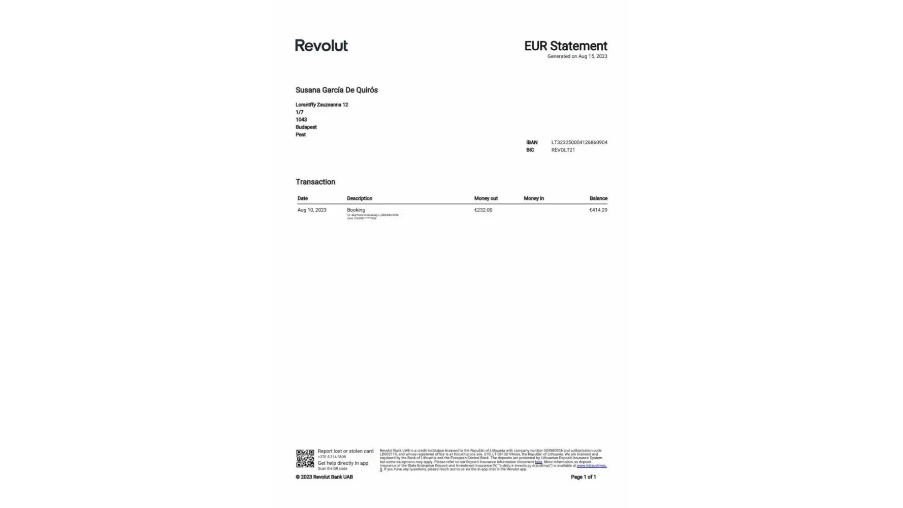 On the 11th I contacted booking.com by chat and the following day I was prompted to send an email enclosing the bank statement documents, which I did. The same day later I receive an email from booking.com enclosing an answer from the hotel saying that "virtual credit cards can't be charged twice" (I have a Revolut account with a physical credit card).