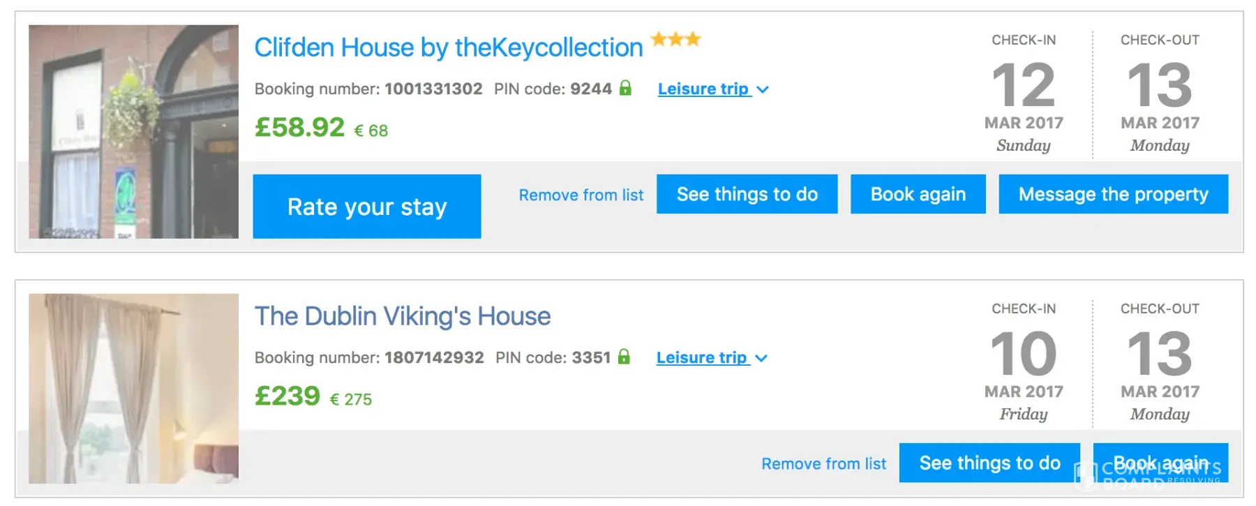 Me and my partner booked to stay in The Dublin Viking's House (Booking number: [protected] PIN code: 3351) in Dublin (1 Kenilworth Park) from March 10th - 13th. There is absolutely NO soundproofing whatsoever in this building. We arrived in the evening on March 10th and didn't have too much trouble as the noise finished earlier than the next night. However, on the night of the 11th we could hear absolutely everything echoing throughout our room all night long. Above us, they were only talking, walking around and phones vibrating but it was loud enough to keep us both from sleeping. It finally stopped at around 5am, by which time we were both shattered and it totally ruined our day (1 out of our 4-day holiday!)