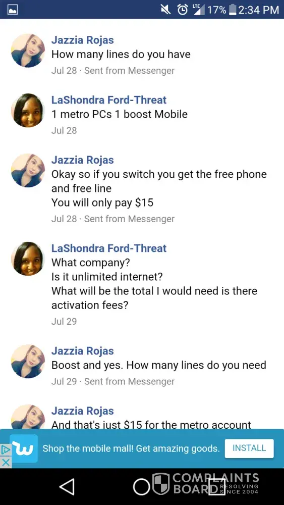 So i went to a boost near me and they did something to the phone and it still wouldnt work so they looked up my account and said my bill was due its 50 and i told them the same as i typed above and the guy their said that sounds like fraud and to contact the store or corporate they can fix the issue and credit your account. But i needed my phone to make the phone calls and so since i only had $20 to my name i switched to the $3 a day plan to be able to use the phone today and tomorrow to try to get thia issue resolved to file a complaint and to get my service back activated with the unlimited plan for the rest of my month to the 29th. And have a $6 credit because i shouldn't have had to do that and i shouldnt have been lied and manipulated just so the store can get a sell this is not right and i need the issue resolved. I asked for corporate number no one will give it to me i spole to like 5 stores on hwy 6 they all say it wasn't their store or its no way to look ot up to sew if it was done at their store. The customer service only noted my account and said they will escalate the issue and some one will get back with me as i explained after tomorrow my phone will be off so i want be able to have my issue resolved. Please help me because my next step will be to contact the BBB and the news. Thank you a very disappointed and highly upset customer. Lashondra Ford
