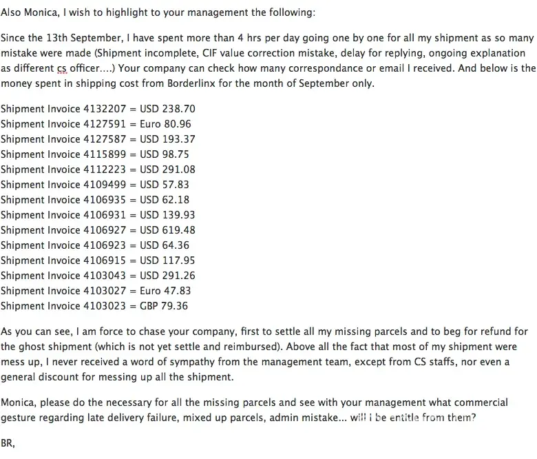 Trying to work things out with Bordelinx directly has left me with more questions than answers and ongoing issues, so I hope going through these other channels will provoke Borderlinx to fulfill their end of the service I was promised. and paid for.