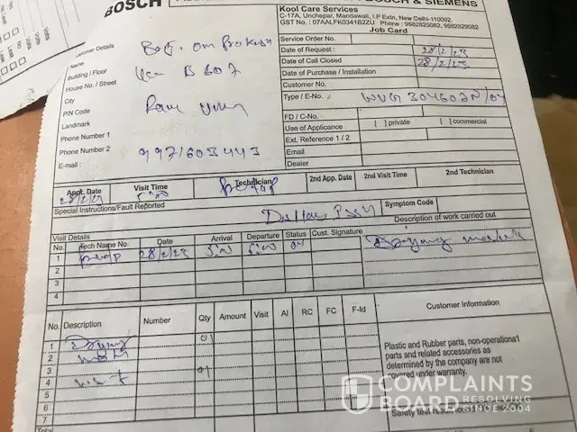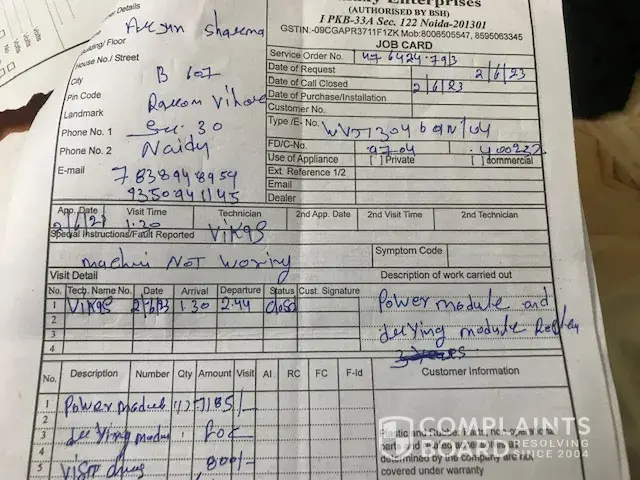 3. It is not understood as to how can a module of Bosch machine can fail repeatedly without any analysis for its recurring failure. The response of out sourced service agency needs much to be desired. I spoke to Area Manage Mr Kukreja and apprised him of repeated failures of parts and cost involved.