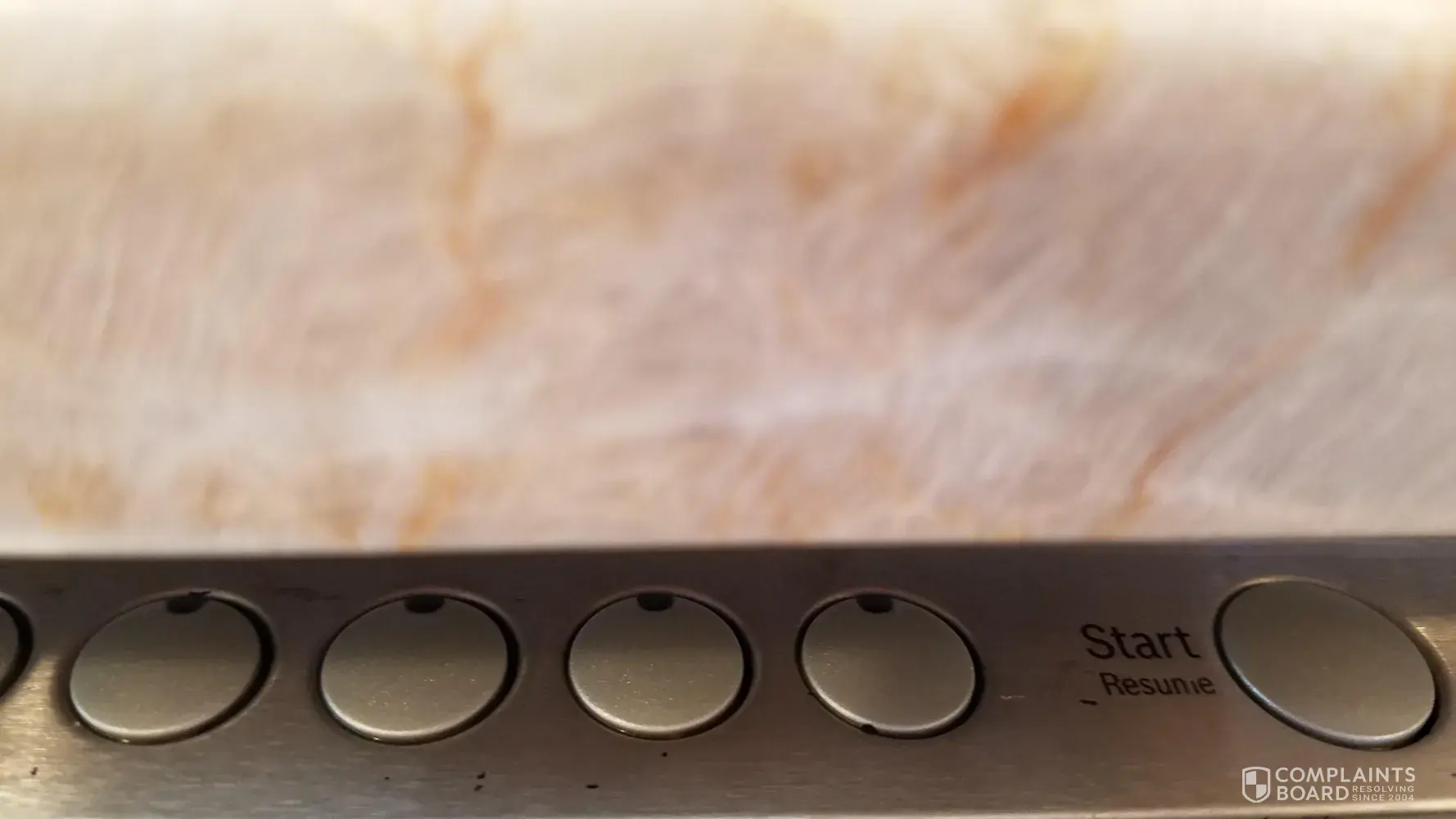 My opinion (and others opinions I have read) are that this is clearly a design flaw. The print is on the surface and not etched into the metal. Bosch does not want to admit it is a design flaw, then they would have to replace the panels for their customers. They blame the customers and say we use abrasives (not the case). When I didn't use anything to clean it and left it dirty, the print continued to wear off. The pictures show the progression of print wearing off after I stopped touching it or cleaning it. Please advise as to steps I can take, as I have wasted a lot of time with Bosch customer service, who clearly disregard their customer's rights.