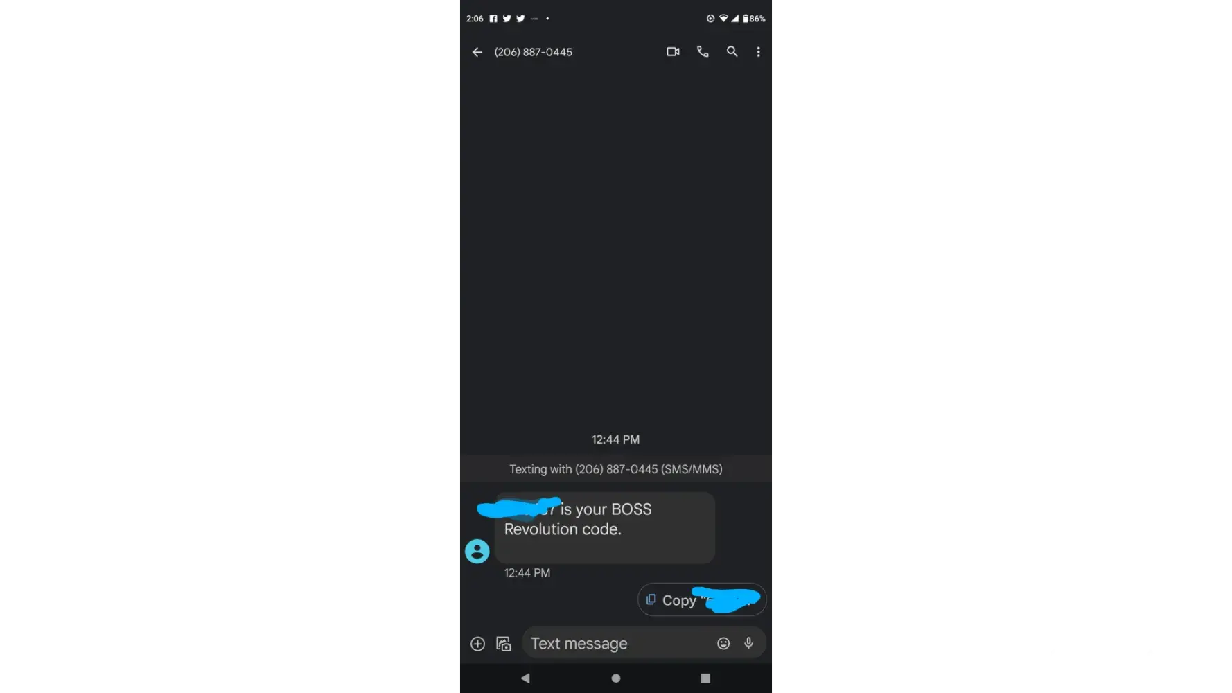someone create BOSS Revolution account my phone number