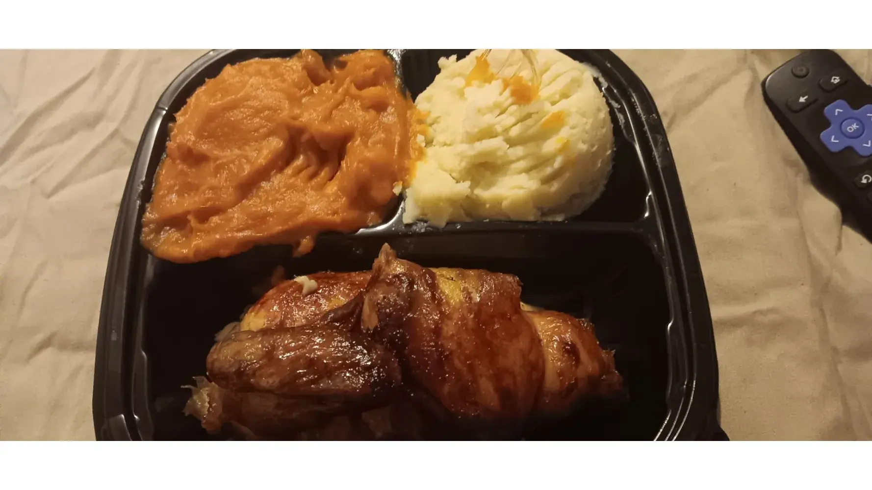 When my son came home and from work and opened the order, he saw as I did that the chicken was actually burnt and was probably small because it was dried out. At this point and time, I was not going back to the store to return it.