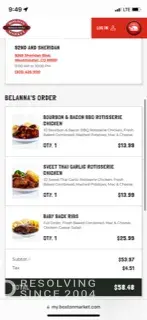 I placed an order at Boston Market today (12/29/24 at 3:11:16 pm) for a whole chicken, cut up. It was purchased for my son for later this evening when he arrived home from work.