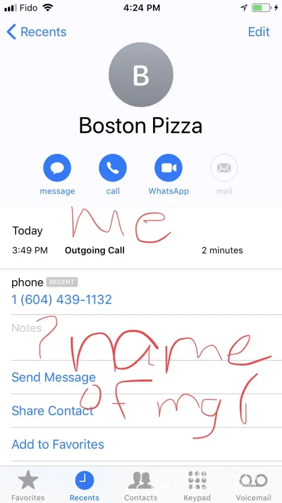 I made an order for delivery to the local Boston pizza in Dawson creek bc Canada