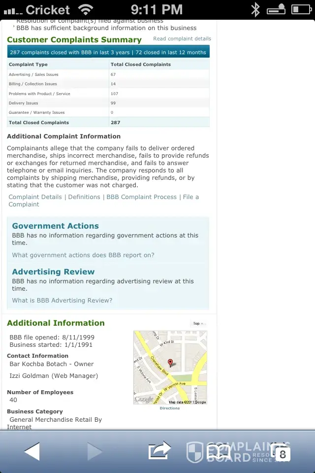 Now I admit that when I began to call them the next day as planned, I had an experience similar to what many consumers on boards/such as these have expressed: I couldn't reach anyone no matter how many times I called the main phone number. I was definitely frustrated, and in the course of Googling for a different number to try, discovered a litany of complaints against Botach -- many of which had to do with them not answering the phone. I started to fear that I had not done enough research before using them, and that perhaps I was about to fall victim to some kind of scam.