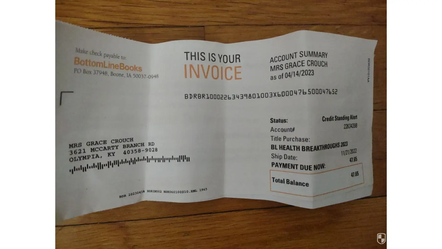 I have received an invoice for a book I never received.The book is "Health Breakthroughs 2024" according to the statement the book was shipped 11/29/2023 i have never received the book.