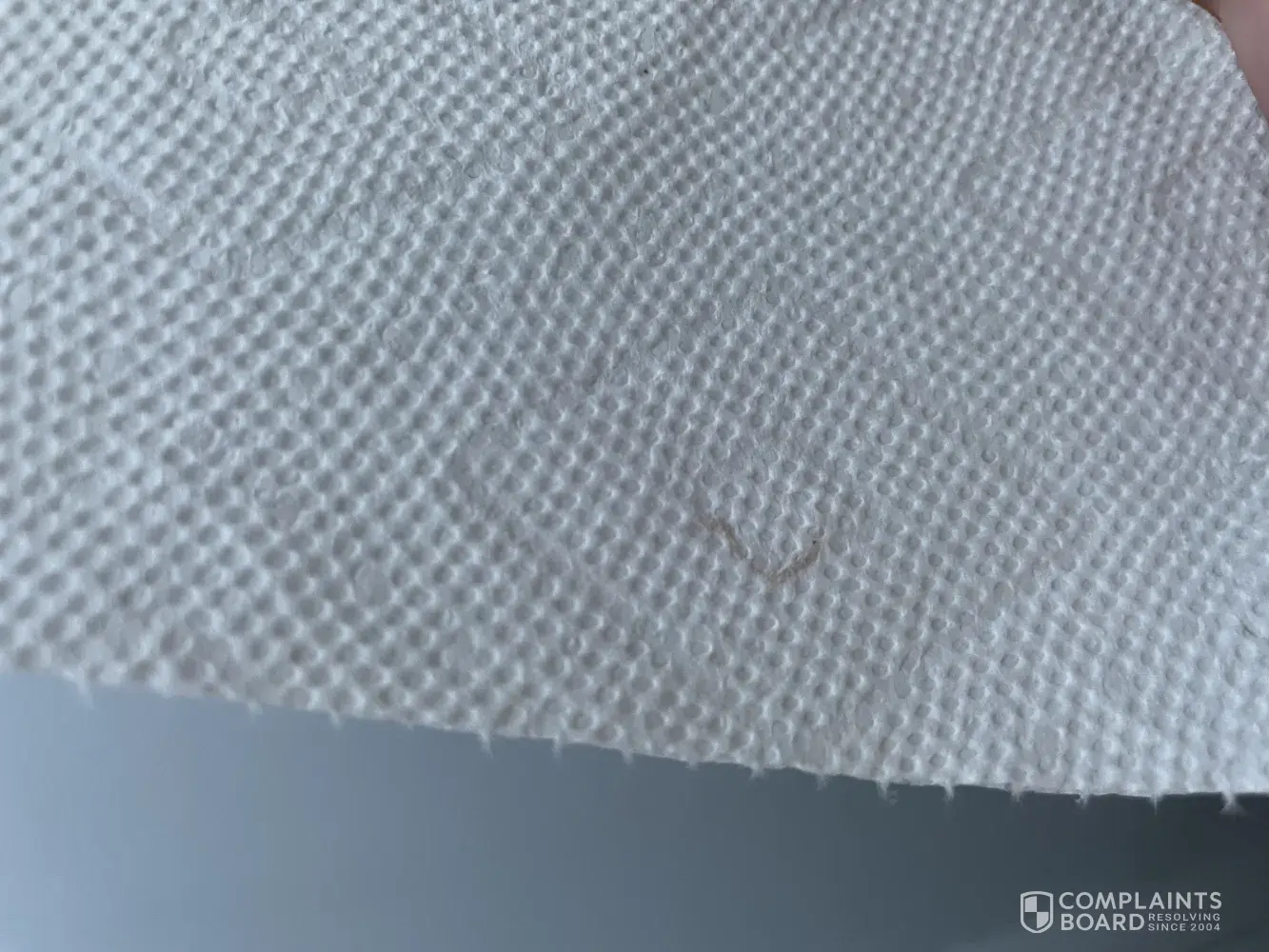 Desired outcome: I used 4 towels from the case i purchased and all have the same problem. Would be nice to get a refund since the product was/is defective.