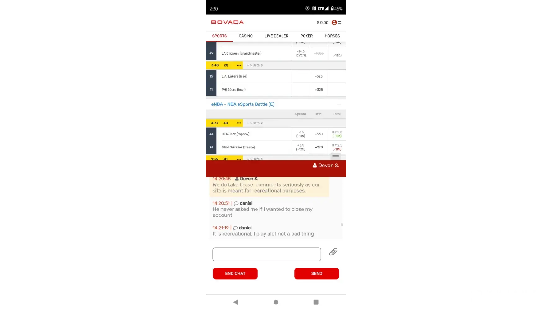 Desired outcome: It would be nice if Bovada could acknowledge the MANY times they ruled a wager for me VOID when in fact they should be wins. I HAVE RECEIPTS that they refuse to even look at.