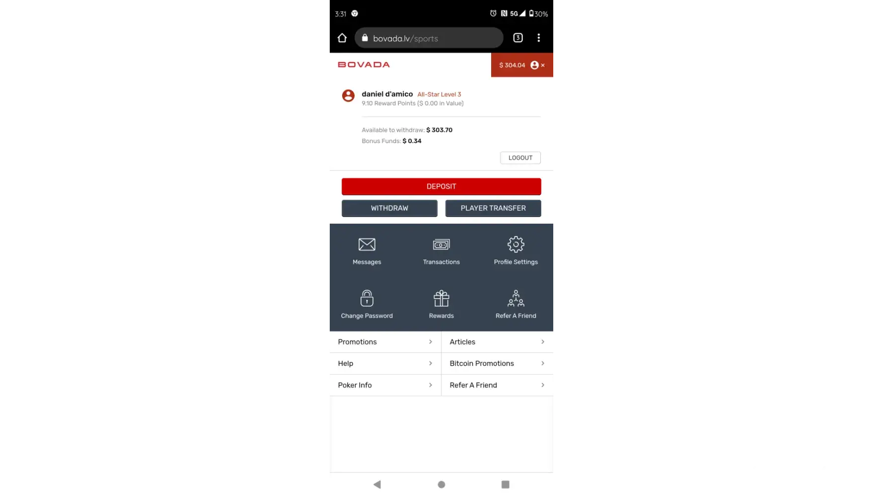 Funds deducted from my Bovada account