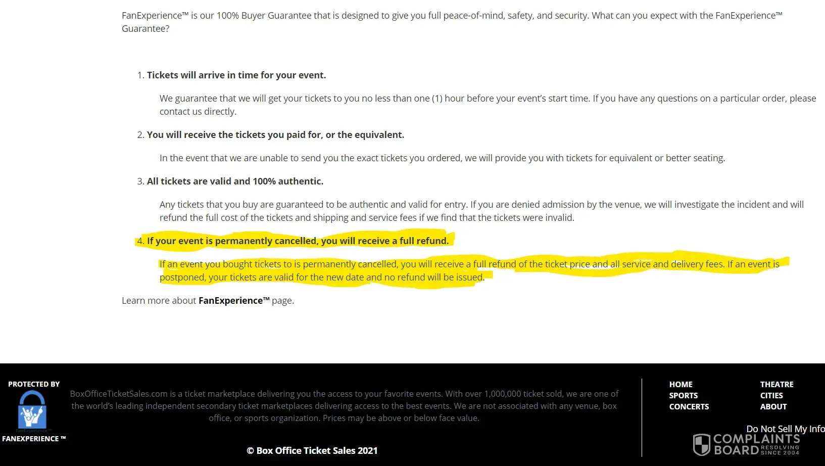 Ticket refund not provided when concert was cancelled