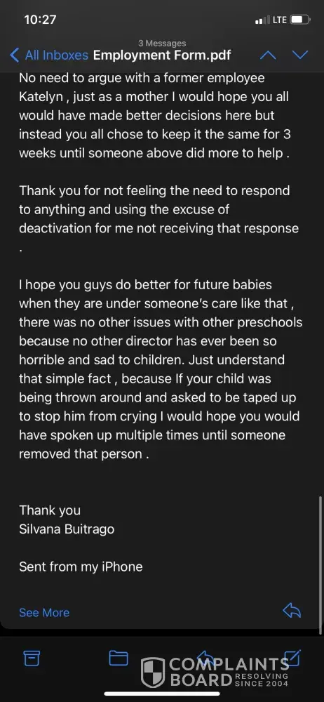 Read full complaintAbuse of power, neglect, being okay with a person not suitable to work with children