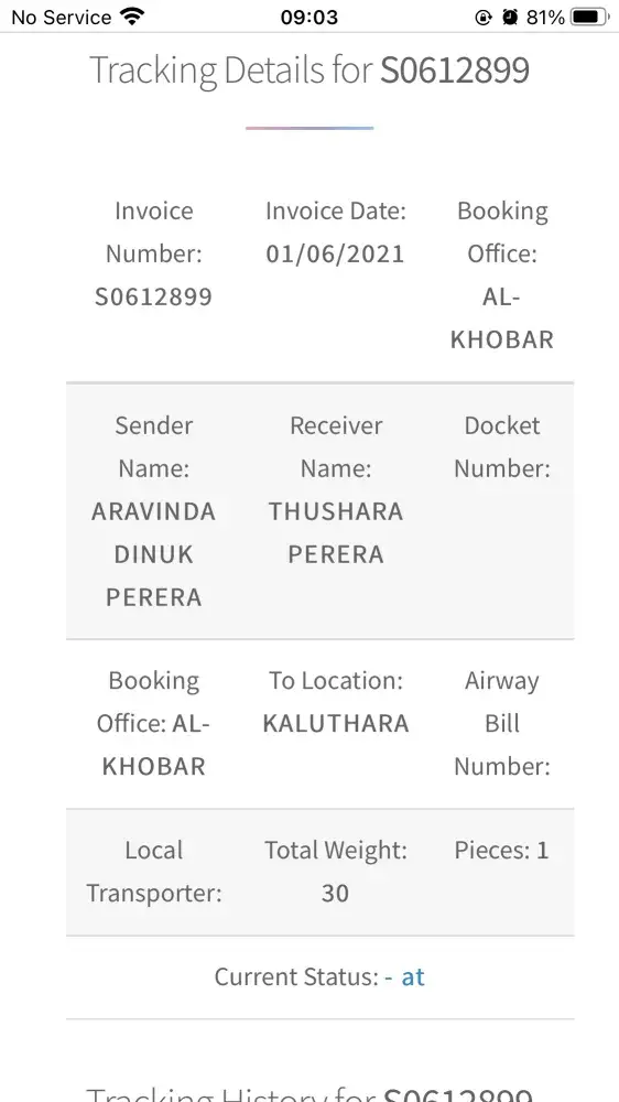 My cargo given in Saudi on May 2021, the S0612868 not received . The service is horrible of BPL cargo . No person should use BPL cargo on Saudi . Officially we are planning to launch a cheating case with Saudi Government,