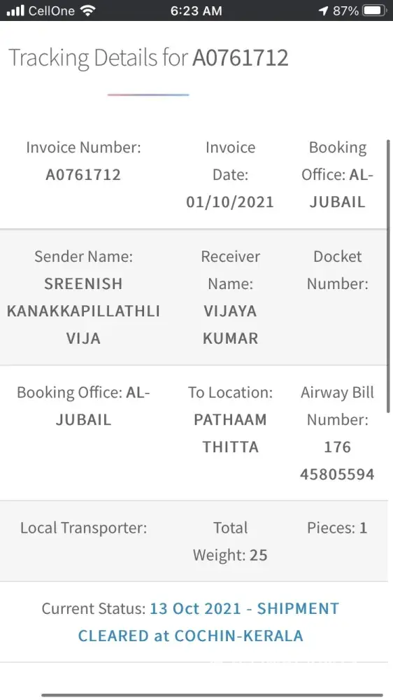 Until now I don't received any information regarding my cargo. At least I need to get the contact number of your office in kerala to track the cargo. If I track this cargo, it's showing customs clear the cargo from 13 October from kochi. Please provide the contact numbers . [protected]@gmail.com it's my mail I'd . +[protected] it's my contact number.