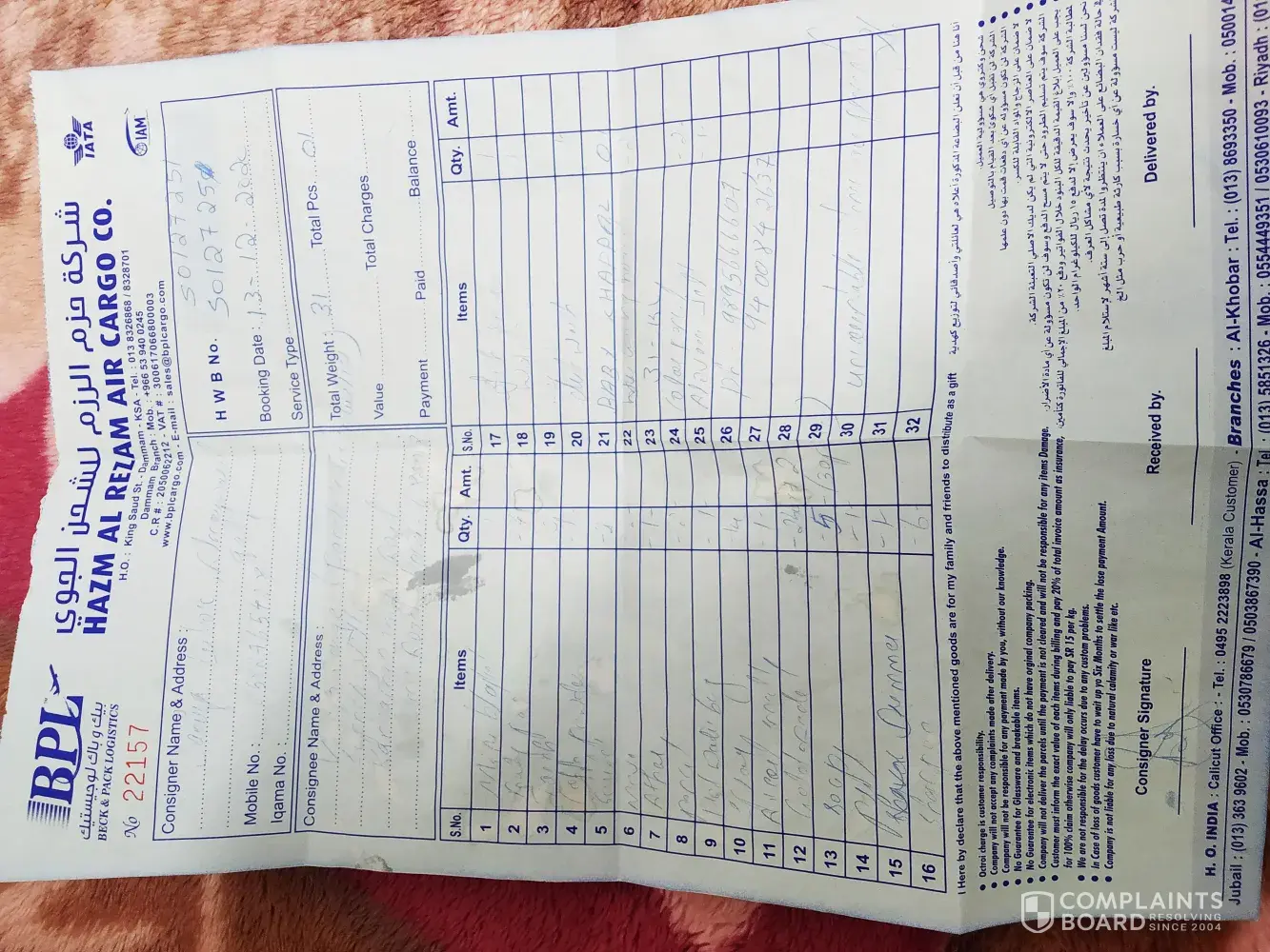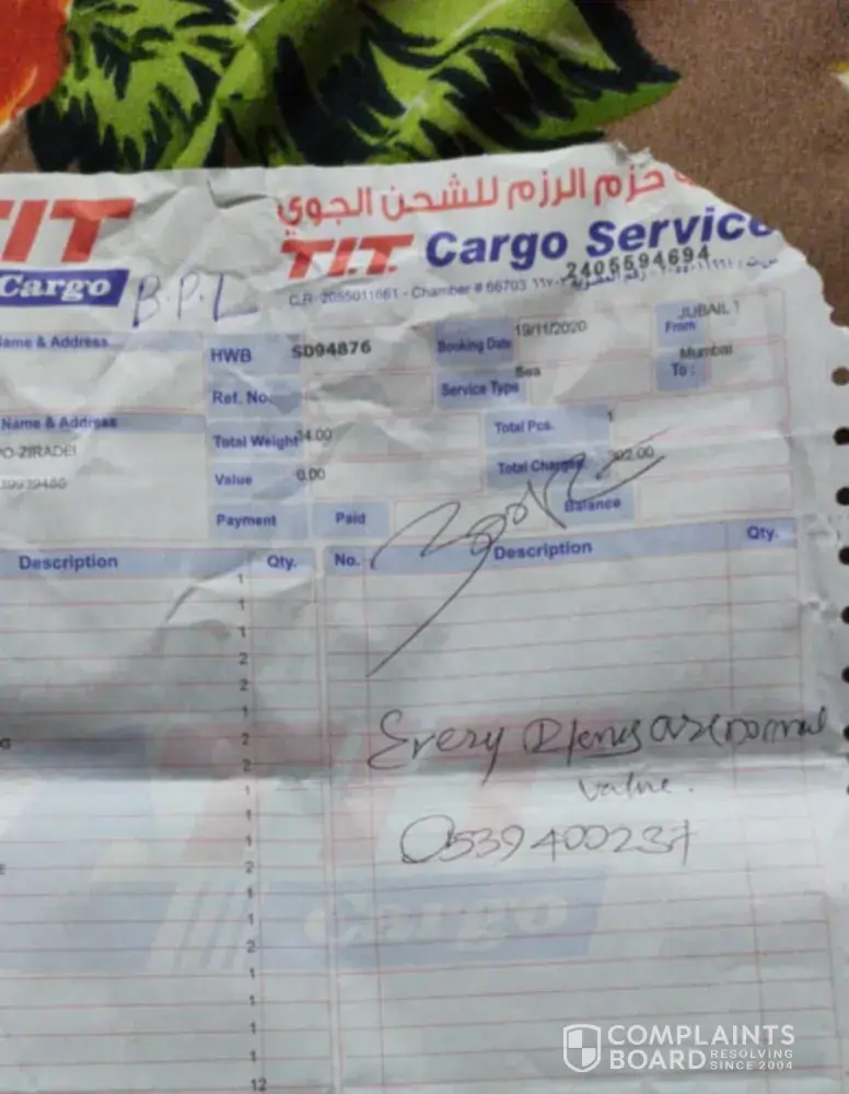 I am speaking from saudi arab Damam Al Hasa. We sent some goods from BPL. Cargo on 5 December 2020. It has been 4 months so far. So far, some things have not been found at our house, so we want you to help us, please! 4