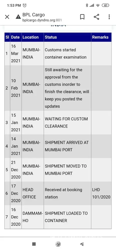 Dear sir my shipment invoice no S0713715 date: 07-december-2020 was suppose to be delivered from Saudi to India in 60 days but now its been more than 4months and the status is still pending.. As per the courier office all containers have been hold by customs but its been there since long time. Kindly arrange representative from bpl cargo to clear customs ASAP.