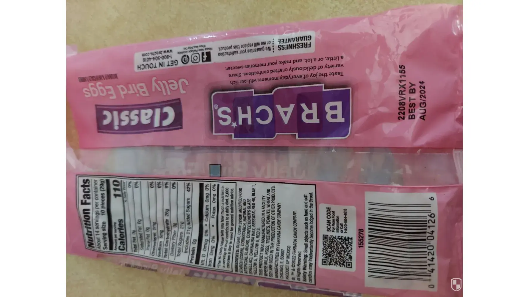 I purchased a 11oz bag of Classic Candy Corn from a local Walgreens. After eating a few tasty pieces i came across a horrible chemical taste that apparently affected the rest of bag. Whatever this is was on my lips and tongue. I needed to rinse my mouth out wash my lips and hands as the residue had lingered. I tried again today thinking maybe it was my mouth but NOPE it was horrible. Here is the bag information for Brachs maybe you can look into this not sure how many other bags were affected. barcode 155915, [protected], 3137VRX2143 Best buy June 2024.