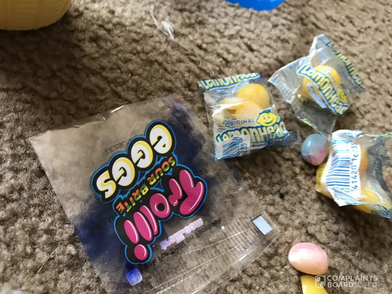 I really like the marshmallow easter hunt eggs candy it so hard to find it around easter I always purchase at least 20 bags around easter and I have never had any problem with it. I was very surprised and hurt by this.
