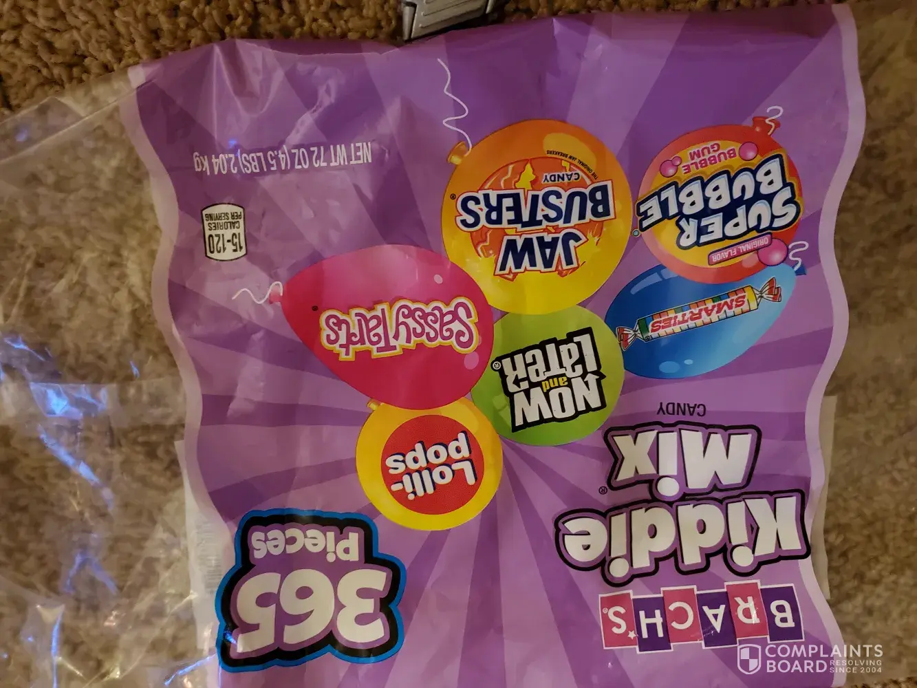 I bought a variety pack of Brachs Kiddie mix for my son's birthday. It seems as if there are candies missing. It was supposed to have suckers and other candies however 60% of the bag was jaw breakers and the other percent was now and laters, then gum. There were only 1 suckers and 2 pixie like candy. All the variety that was actually noted on the bag was not in there at all. I have pictures to show the difference as I separated all the candies to take out all the jawbreakers because I don't believe kids should eat them. I wish this would be looked into as this is pretty much false advertising. I paid 14.99 at party city for this.