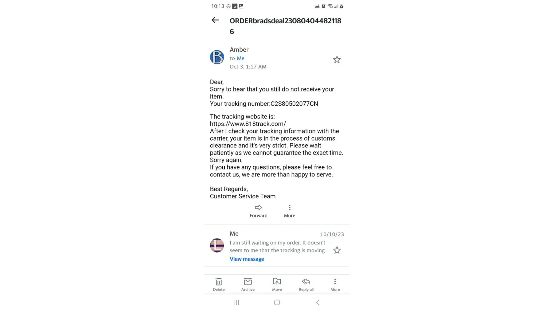 Customer Service number is just an answering machine.