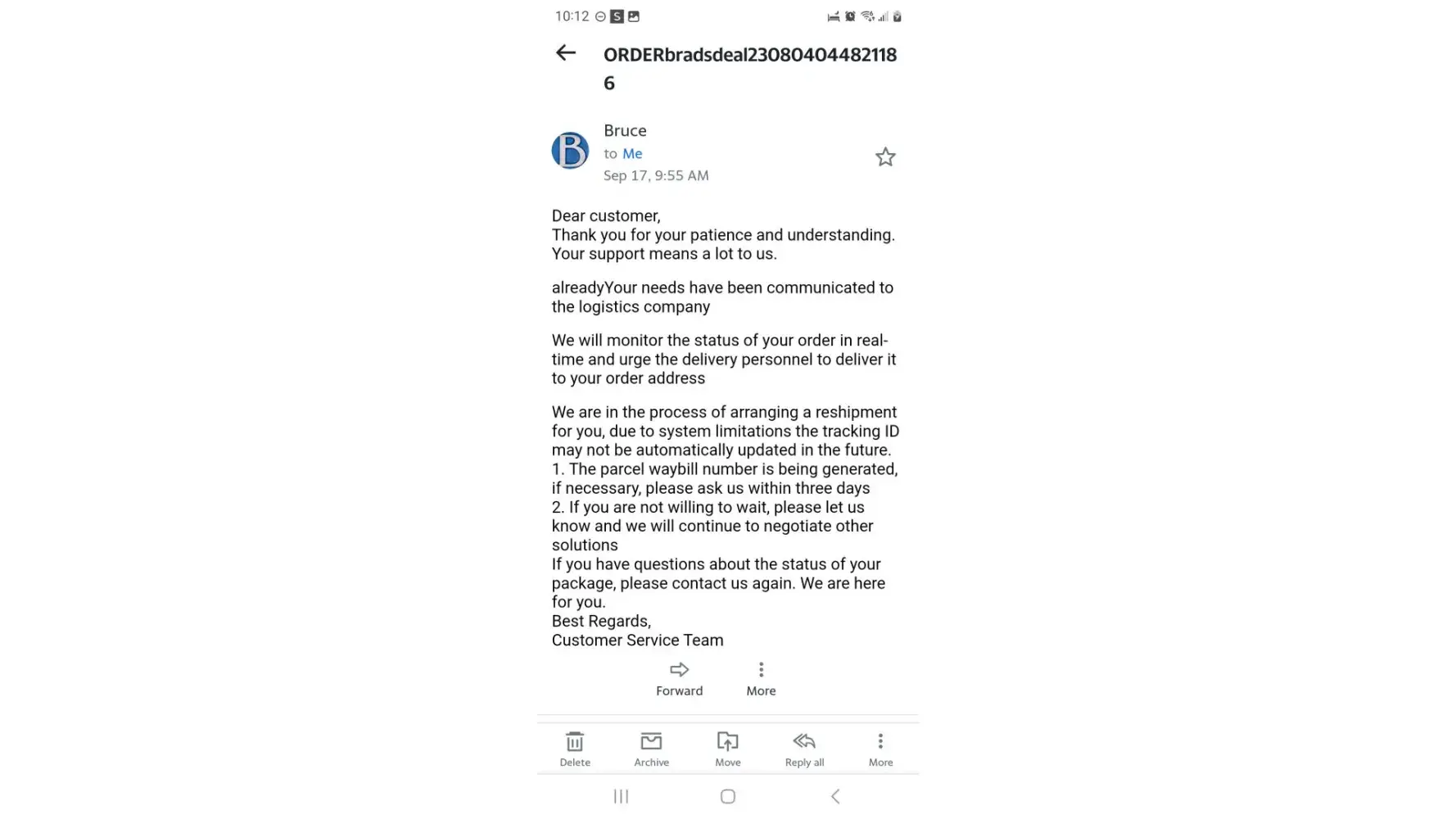 Concerns with Brad's Deals Order: No Response and Possible Scammers