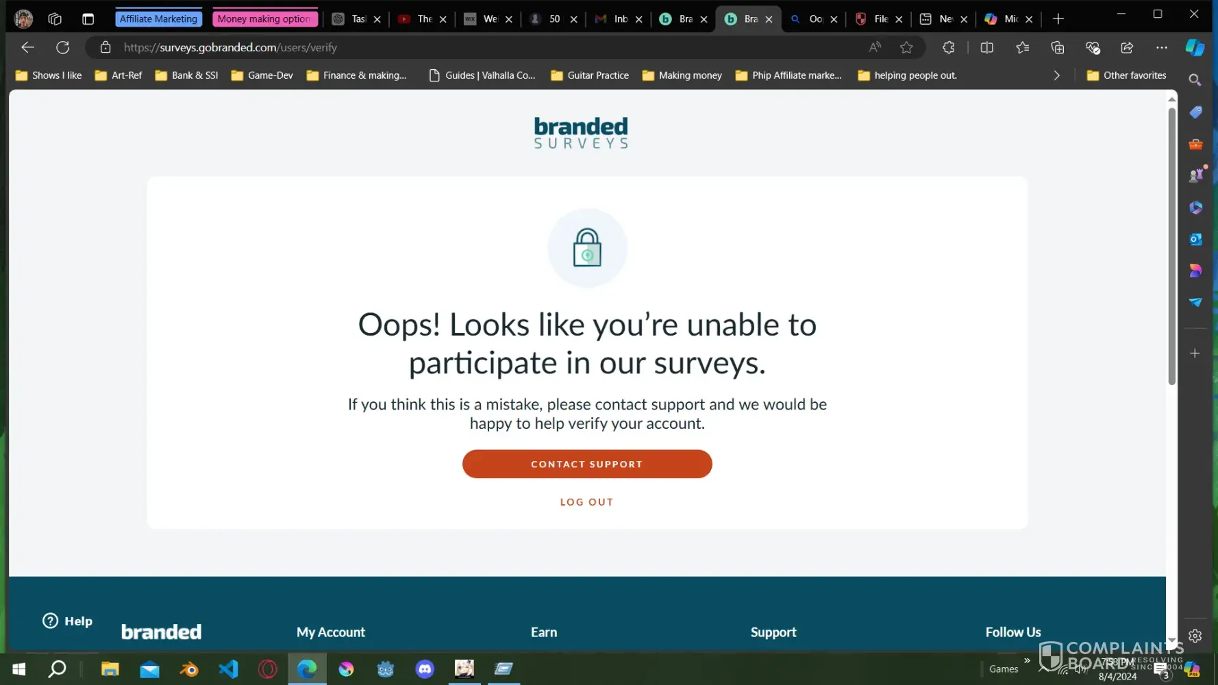 Branded My Branded surveys account is unfairly flagged, When I contacted Branded Survey customer support representatives they told me your system is