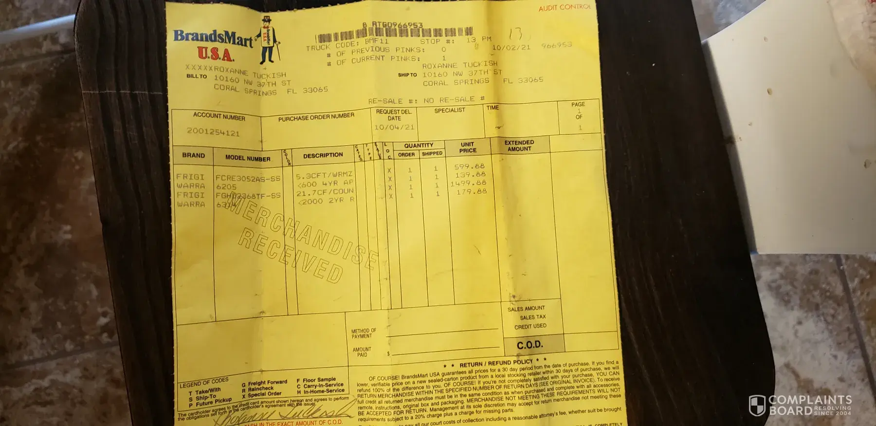 Happy new year. I tried to make a formal complaint to the Better Business Bureau relevant to Brandsmart USA "0 day return" policy to no avail. I'm very surprised that Brandsmart has decided to play sneaky on us by not displaying proper language advising potential clients of their return policy on their description cards and adjacent in order for the client to make pertinent decisions. Thank you for writing your complaint. Please keep us updated on the outcome. Thank you in advance.