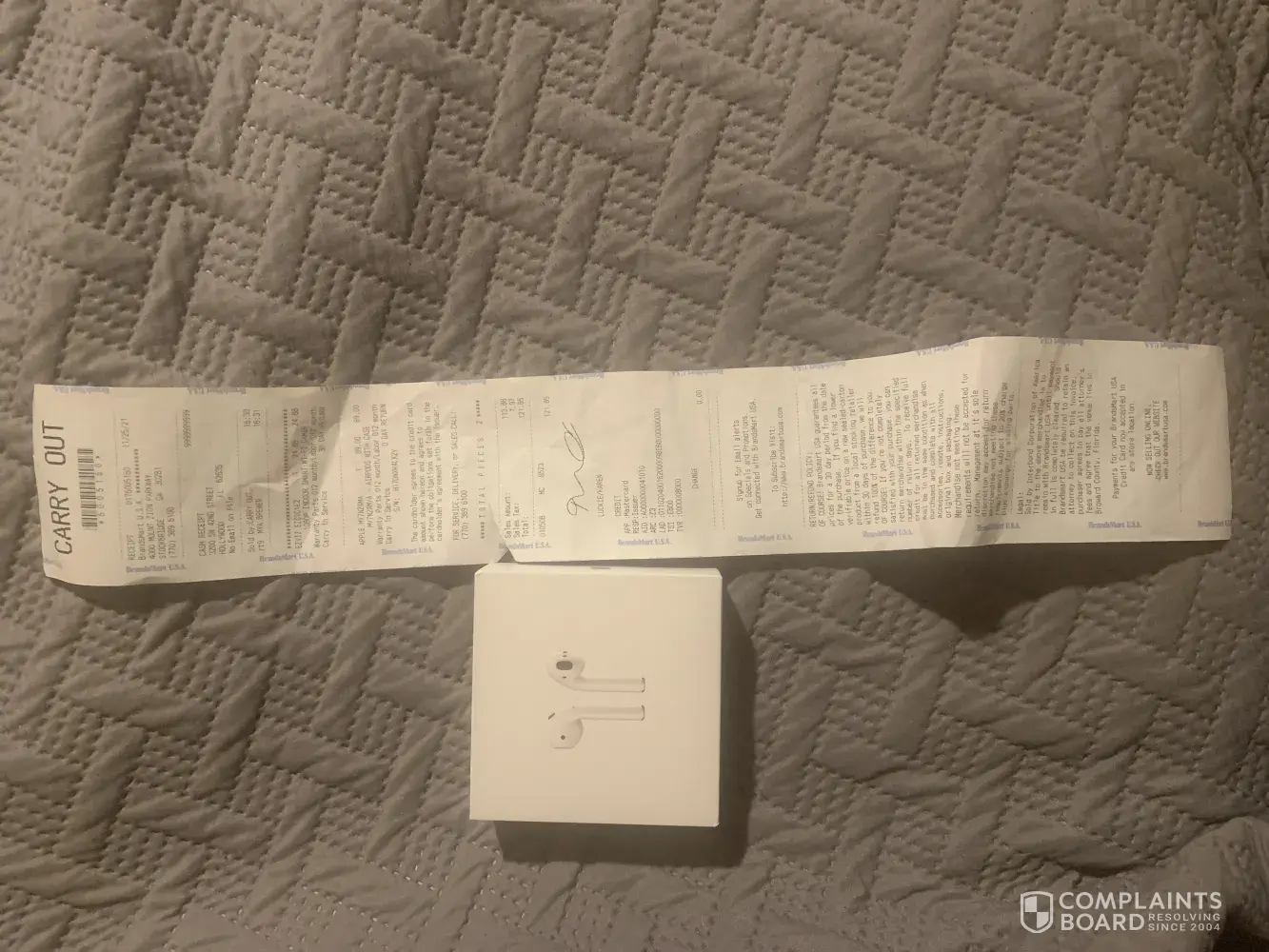 AirPods by Apple I bought on Thursday Thanksgiving day sell I asked the cashier if I'm not satisfied am I able to bring them back she said yes so I proceeded to ring them up supposed 2nd generation their not they are 1 generation also when they was pair to my phone no one couldn't hear me so I took them back on Saturday 11/28 the manager said I couldn't return them because on the receipt it says no return for Apple product I told him how would I know that if I don't get a receipt I asked the cashier and she told me yes he said well I'm not gonna return them I even said they supposed to be generation 2 they are generation 1 that is false advertisement he got mad and say he was not returning them