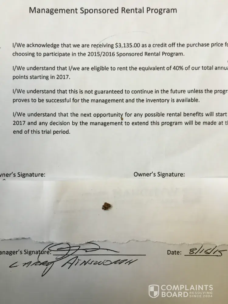 I've been an owner since 2015. I was told the EXACT same thing in order to get more money from me! They "needed" my first row ADL condo so they were going to "give" me a rental check each year if I bought "UP" to the next row. What a load of crap! The last time I was there 2 years ago, another couple was there also trying to find out where their rental check was! The answer was, "It was discontinued". How can they get away with this? Class Action? Sign me up!